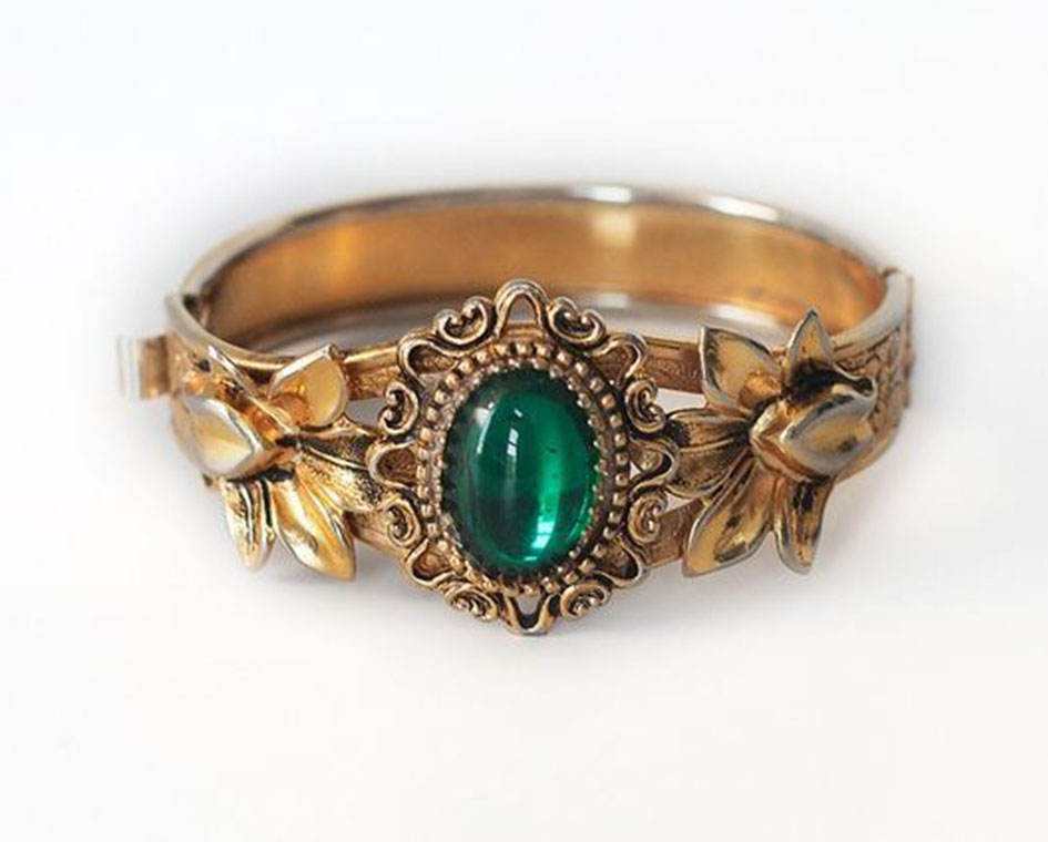 Floral carvings on each side add a touch of femininity and classic charm—perfect for those who appreciate the artistry of antique fine jewelry.