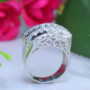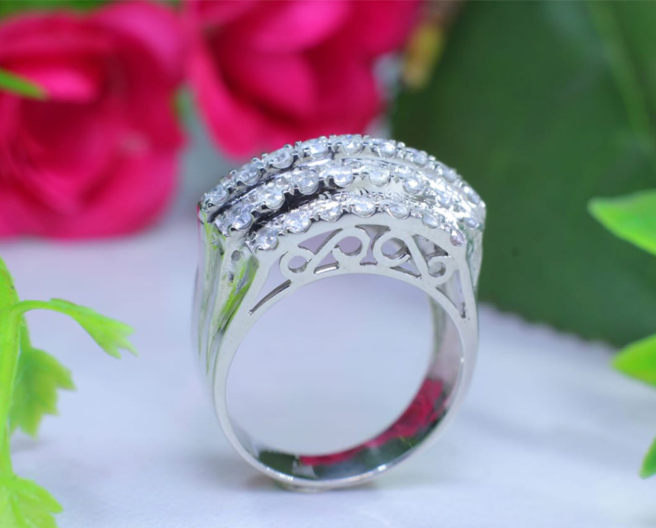 Reveal your graceful charm with Aurora Belle, a stunning ring crafted from 16K white gold and adorned with natural sparkling diamonds in an elegant triple-row design. Feminine curves and delicate side details bring a soft yet luxurious feel to every glance.
