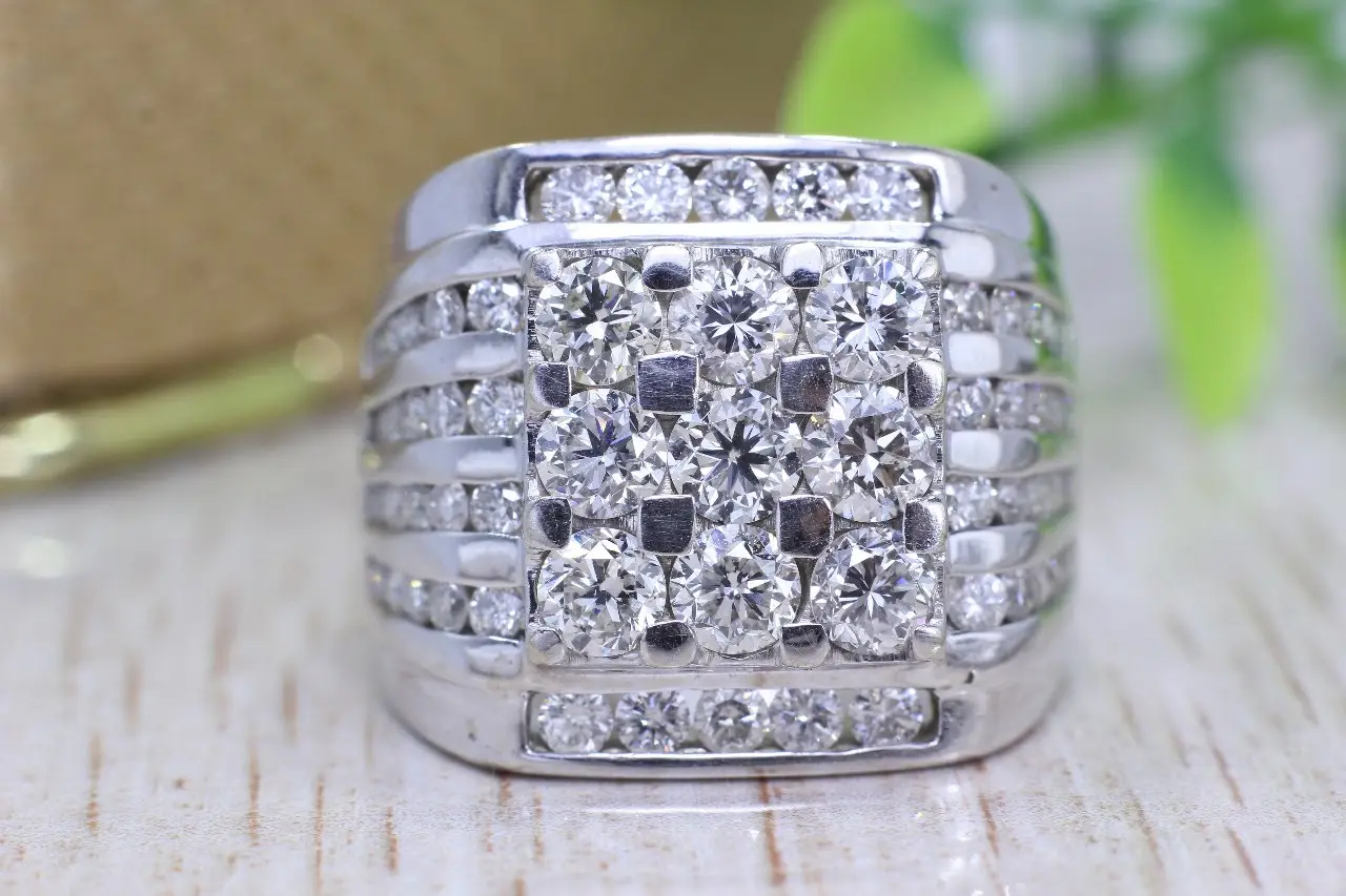 Dirancang untuk pria modern yang percaya diri, cincin Urban Brilliance memadukan ketegasan desain geometris dengan kilau berlian yang maskulin. Tatanan berlian simetris memberikan kesan rapi dan kuat, sempurna untuk gaya hidup dinamis dan berkelas. Cincin ini adalah pernyataan gaya, kekuatan, dan ambisi.