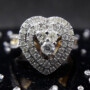 This ring features an elegant heart-shaped design adorned with sparkling natural diamonds. At its center lies a prominent main diamond, surrounded by two rows of neatly arranged smaller diamonds, creating a luxurious and glamorous effect. Crafted from white gold, this piece is perfect for special occasions like engagements or romantic gifts.