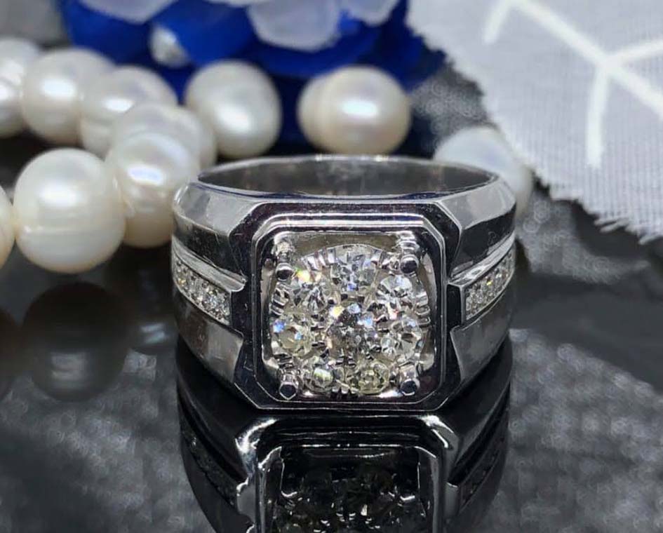 Argento Prime adalah cincin emas putih 16 karat yang dirancang untuk pria berkelas dengan karakter kuat. Dihiasi dengan berlian alam potongan brilian di tengah, serta aksen berlian kecil di sisi kanan dan kiri, cincin ini menghadirkan kesan mewah tanpa kehilangan nuansa maskulinnya.